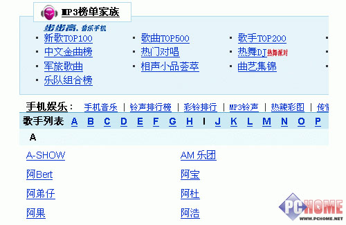 回到正规上来,百度MP3正规的业务仍然是音乐搜索和下载,只是因为版权的因素,在这方面的服务上,百度MP3显得比较低调,这点从百度MP3的首页上就可以体现出来。点击“歌手列表”后,可以看到目前百度MP3的全部可以搜索到的歌手名单,假如不论版权只谈论范围涵盖的话,目前百度MP3还是要比谷歌的全面一些。但是我们必须要注意的是,百度仍然只是提供音乐搜索服务,百度仍然是给出出处网站的连接,关于具体的点击试听或者下载,其实还是要连接到具体的网站连接才能进行。