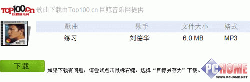 首先我们已经知道谷歌音乐并不同于百度MP3,是搜索音乐网站并提供下载和试听的连接,也就是说比如上图的“刘德华——练习”,假如在百度MP3中搜索该首歌曲,我们可能会得到很多相同的结果,其中包含了许多压缩码率不同,时长不同,下载速度亦不同的大量连接,导致许多人在想要下载的时候只能不断的挑选和尝试,其实这样的百度MP3更像是一个搜索引擎。那么再来看谷歌音乐,如果我们在谷歌音乐中同样找该首歌曲,我们只会得到唯一的结果,也就是如上图所示的一般,这意味着什么?