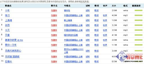然后我们再来到百度MP3,同样从歌手列表中找到“刘德华”,点击进入后看到的就是百度MP3搜罗各大网站并提供出的连接点,没有任何的介绍,也没有归类,显得杂乱无章,但是这也就是过去几年来我们一直在用的,两者相比之下,谷歌音乐的优势立马就显现出来了。