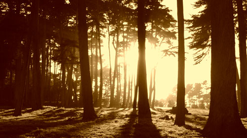 By choosing to shoot in sepia rather than color, we drastically changed the mood this stand of trees evokes.