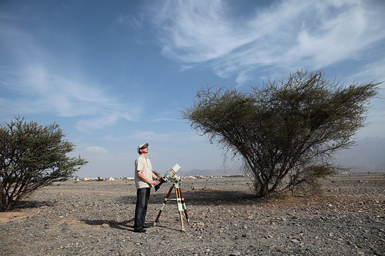 2011年01月04日全球大部分地区都能看到日偏食,聪明的天文摄影师Thierry Legault从祖国法国特地飞到阿曼王国去拍摄日食照片,当时国际空间站正从阿曼上方飞过,因此他有机会同时拍摄到空间站和月亮从太阳前方掠过的照片。他用佳能5D mark II照相机拍摄下了这幅令人震撼的照片。