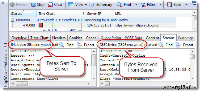 其次,建立HTTPS连接,要求额外的TCP往返,因此会新增一些发送和接收的字节。但是,从下图可以看到,新增的字节是很少的。
