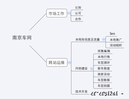 南京车网一周年了,几周之前就和同样做地方汽车门户网站的朋友们说过,我会把这一年的事情记录下来,奈何自己对这篇文章要求很高而自己行文混乱文笔不 清,总是词不达意文章落成可读性也很差,前后推倒几次。只是希望南京车网周年总结可以帮到同样奋斗在地方汽车门户网站的朋友们。这篇文章分为上中下三篇, 主要讲三部分:1.介绍南京车网的工作组织结构和发展历程。2.讲一下几个重要阶段我们是怎么度过的。3.吹一下个人想法,这部分可以不看。今天是上篇。