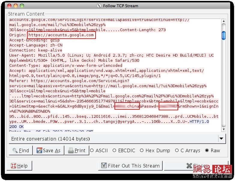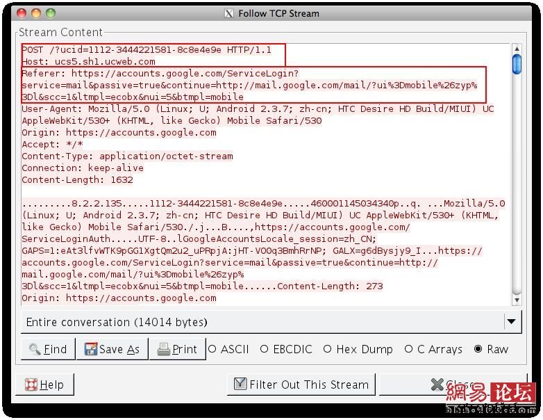 盗号黑客教程第四步:截取HTTPS信息,寻获未经UCWEB保护、明文显示的用户名和密码。