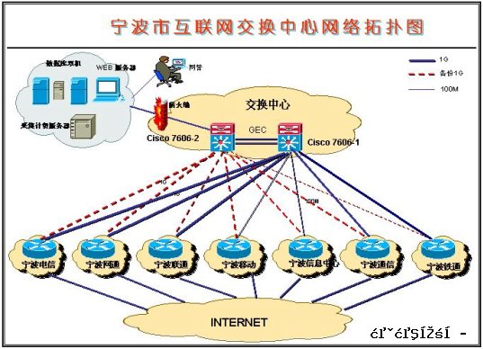 2、增强了网络的可靠性。交换中心的建设,使宁波各大网络实现了双通道、双路由互访,减少了网络信息的中转环节,大大增加了网络互访的稳定性和可靠性。